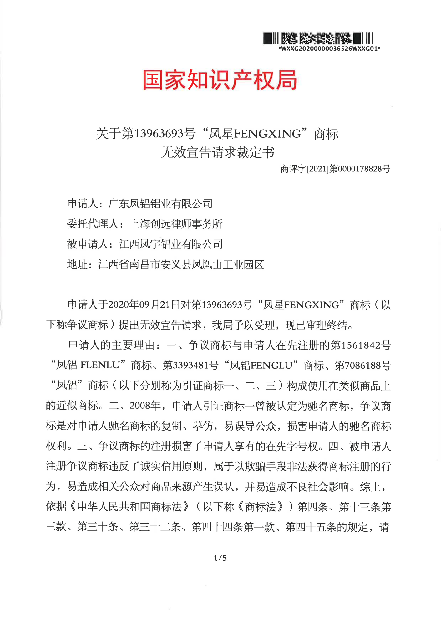 泰安辉知队 | 国家知识产权局:“凤星”商标无效