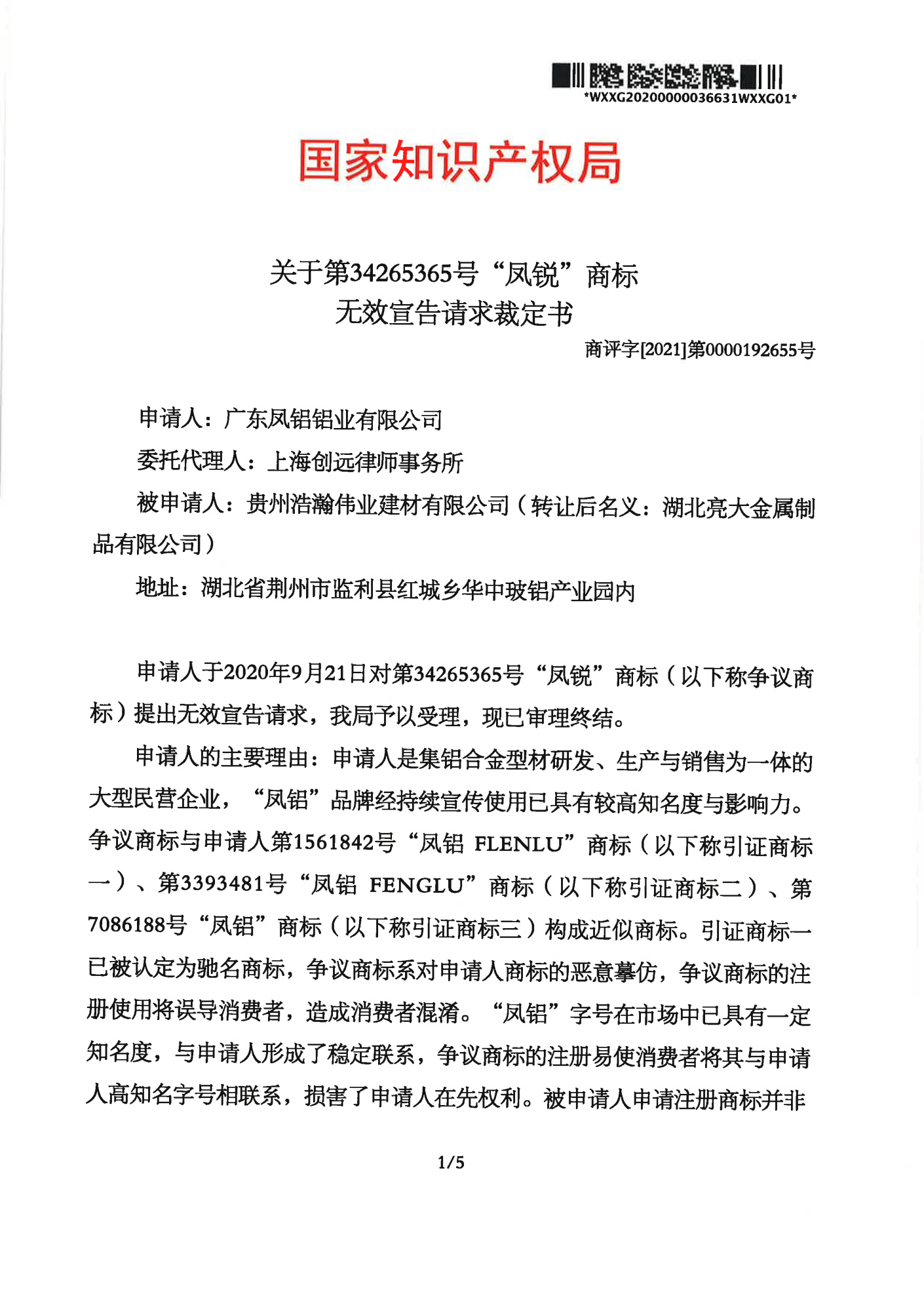 泰安辉知队 | 国家知识产权局:“凤锐”商标无效
